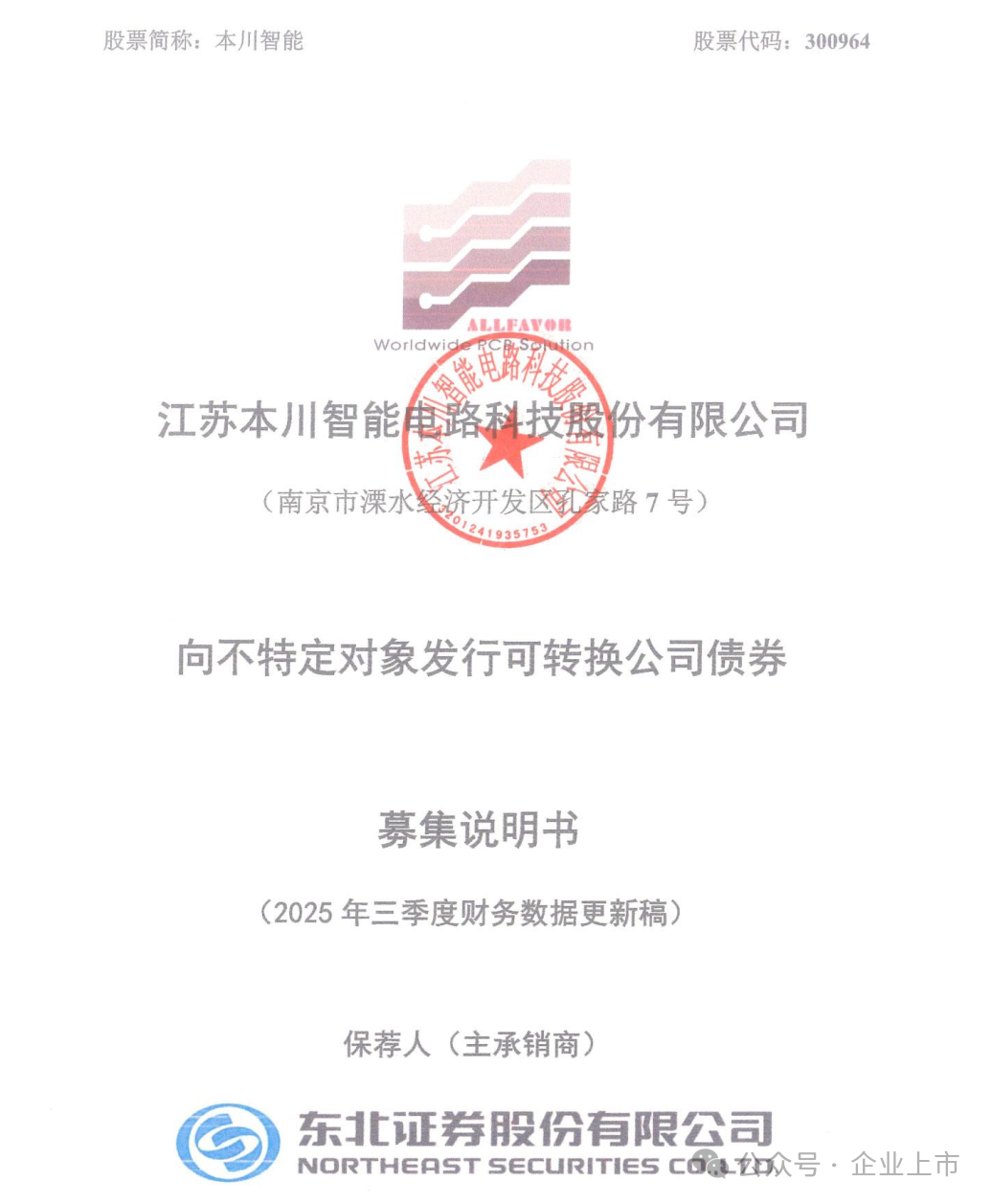江苏本川智能电路科技股份有限公司 向不特定对象发行可转换公司债券募集说明书