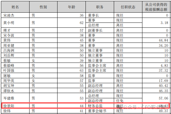 徐景阳先生,1981年6月出生,中国国籍,无境外永久居留权,硕士研究生,注册会计师,注册资产评估师。历任宁波富邦精业集团股份有限公司主办会计、财务部副经理、财务部经理,江苏常奥体育发展有限公司财务总监,浙江亚太药业股份有限公司财务总监。