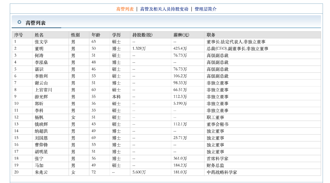 截至目前,云南白药的高管团队如下。