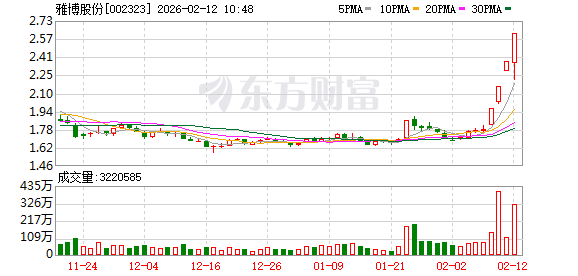 雅博股份盘中涨停,已连收4个涨停板,截至9:37,该股报2.62元,换手率13.65%,成交量2.89亿股,成交金额7.06亿元,涨停板封单金额为5.19亿元。连续涨停期间,该股累计上涨47.19%,累计换手率为45.01%。最新A股总市值达55.57亿元,A股流通市值55.55亿元。