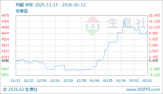 据生意社监测,丙酮02月11日最新价格4650.00元/吨,最近30天上涨10.19%,60天上涨13.05%。