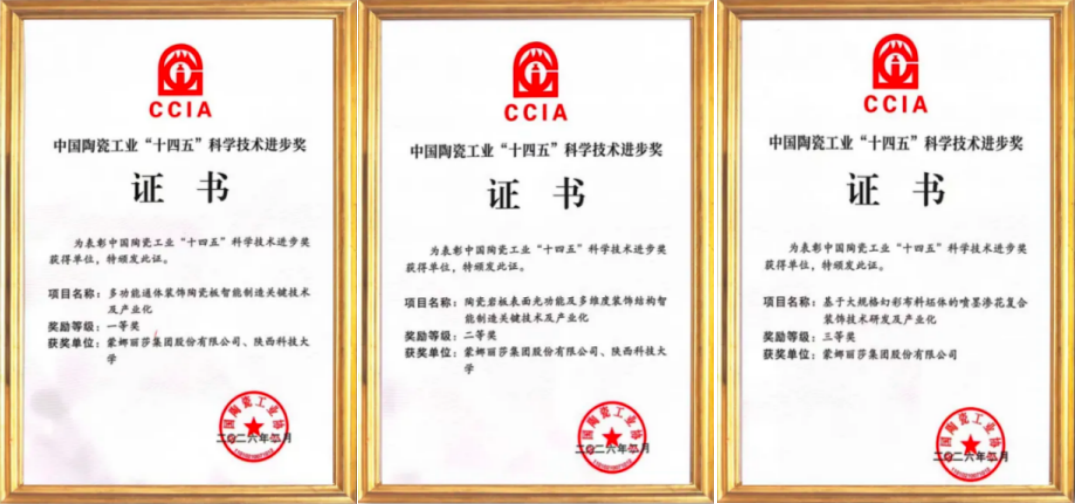 近日,在中国陶瓷工业协会主办的陶瓷行业科技创新与发展会议上,蒙娜丽莎同时入围“中国陶瓷工业百强企业”与“中国陶瓷工业科技五十强企业”两大榜单,并有3项技术分别获得中国陶瓷工业“十四五”科学技术进步奖一等奖、二等奖、三等奖,成为获奖层级最广、成果最突出的企业之一。