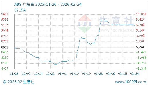 据生意社监测,ABS02月24日最新价格9176.67元/吨,最近60天上涨12.25%。
