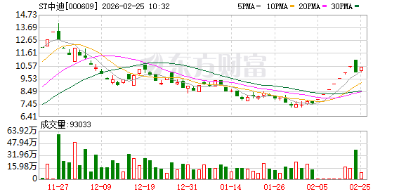 ST中迪(维权)再度涨停,9个交易日内录得8个涨停,累计涨幅为40.29%,累计换手率为28.36%。截至9:35,该股今日成交量859.65万股,成交金额8772.93万元,换手率2.95%。最新A股总市值达31.36亿元,A股流通市值30.50亿元。