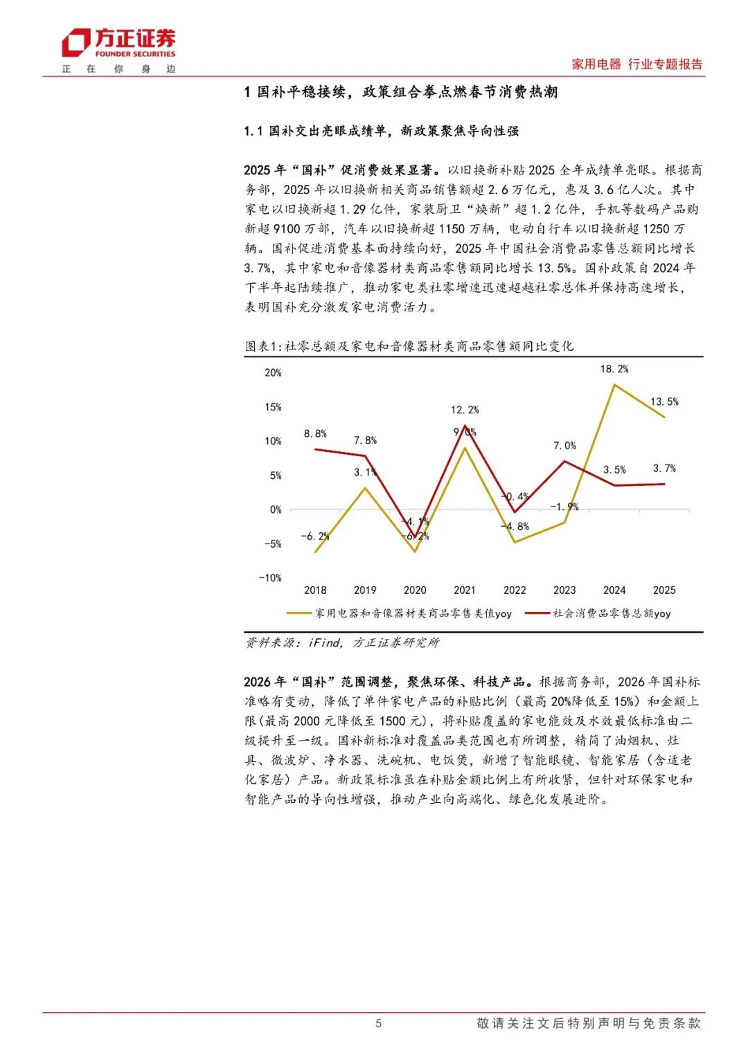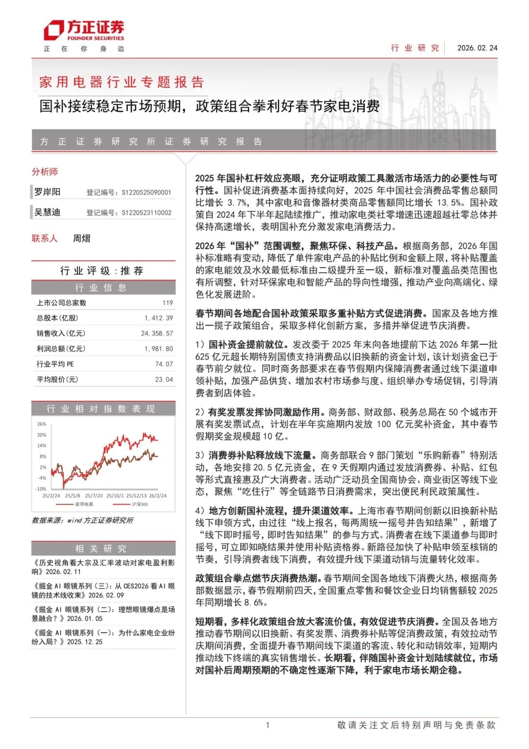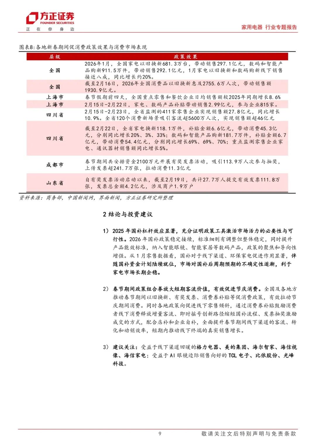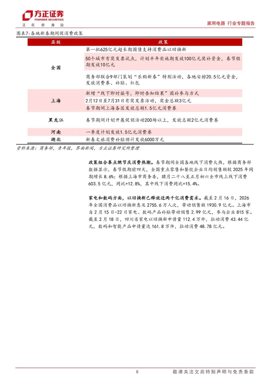 本文来自方正证券研究所于2026年2月25日发布的报告《国补接续稳定市场预期,政策组合拳利好春节家电消费》,欲了解具体内容,请阅读报告原文。