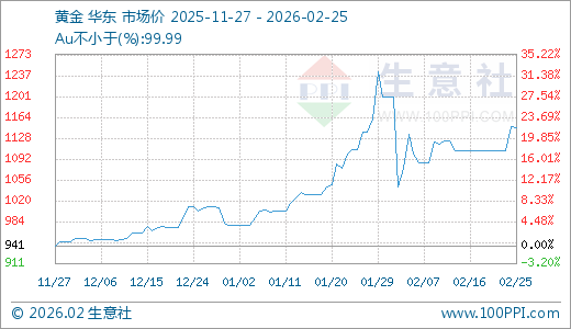 据生意社监测,黄金02月25日最新价格1147.14元/克,最近5天上涨3.58%,60天上涨13.61%。
