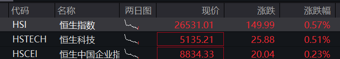 港股:截至发稿,恒指涨0.57%,恒科指涨0.51%。