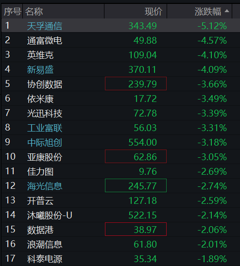 算力概念股盘初调整,特发信息(维权)接近跌停,长飞光纤、天孚通信、光库科技、长芯博创、罗博特科、德科立等纷纷低开。