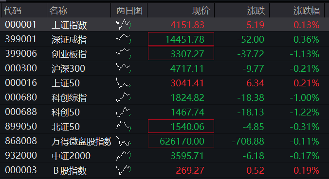 A股:截至发稿,沪指涨0.13%,深成指跌0.36%,创业板指跌1.13%。