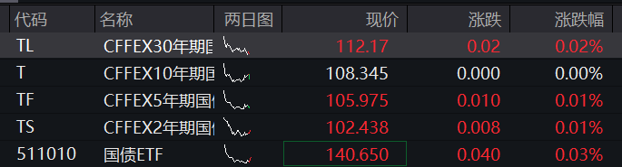 债市:国债期货震荡上涨,截至发稿,30年期主力合约涨0.02%,10年期主力合约持平,5年期主力合约涨0.01%,2年期主力合约涨0.01%。