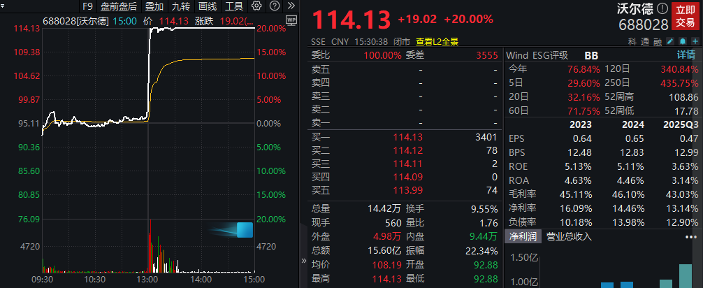 2月27日午后,A股培育钻石概念突然异动。国内超硬刀具龙头沃尔德(688028)午后开盘即上演“旱地拔葱”走势,仅用时2分29秒便封死“20CM”涨停,股价突破100元大关的同时创下历史新高。