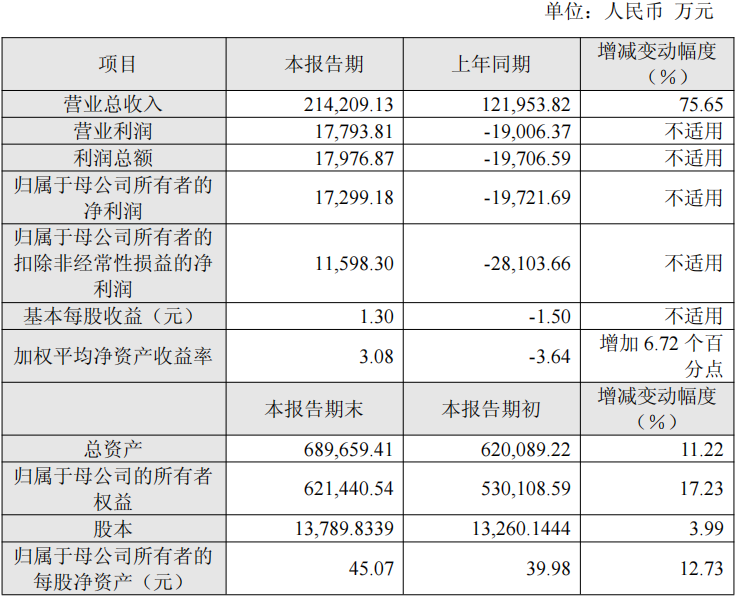 同时,公司实行全面预算管理,优化研发资源配置,各项费用管控合理。报告期内得益于收入增长及降本增效工作的扎实推进,公司实现归属于母公司所有者的净利润为1.73亿元,较上年同期相比增加3.7亿元。