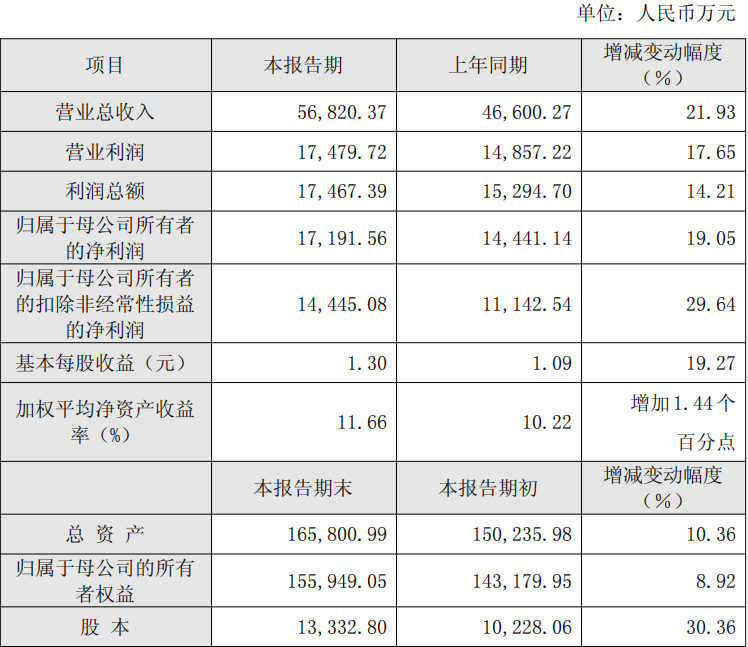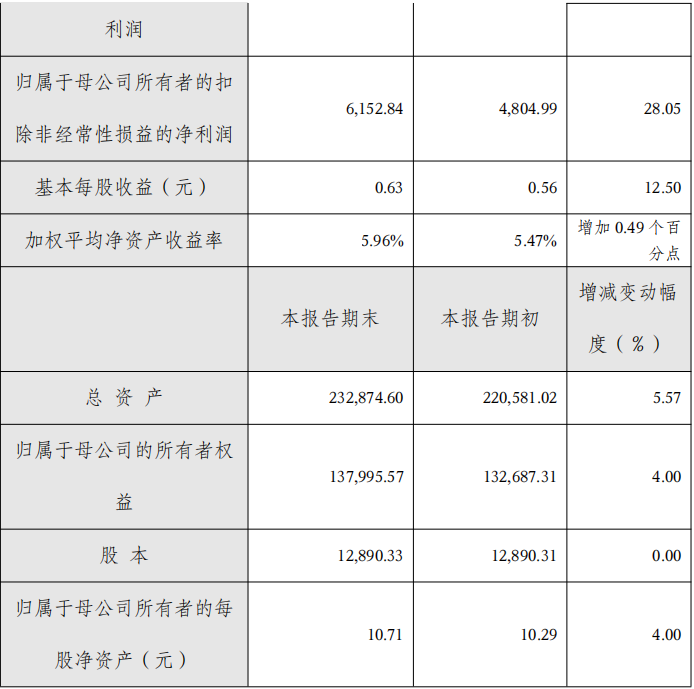 在盈利能力方面,加权平均净资产收益率为11.66%,较上年同期的10.22%增加1.44个百分点。