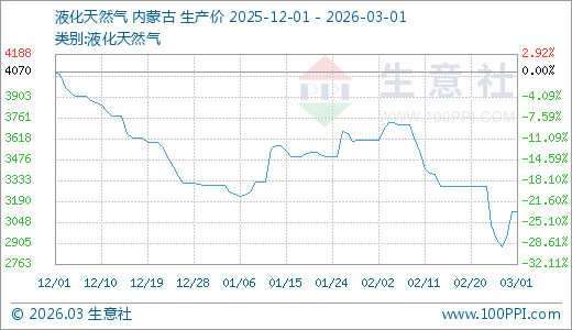 据生意社监测,液化天然气03月01日最新价格3118.00元/吨,最近5天上涨3.04%。