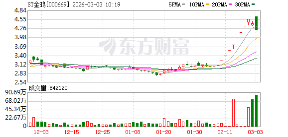 ST金鸿再度涨停,10个交易日内录得9个涨停,累计涨幅为50.32%,累计换手率为33.07%。截至9:25,该股今日成交量476.50万股,成交金额2206.19万元,换手率0.70%。最新A股总市值达31.50亿元。