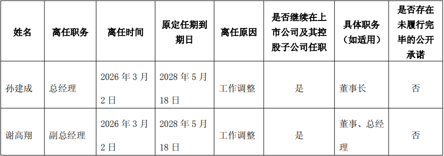 据公告显示,因工作调整,孙建成先生申请辞去公司总经理职务,辞职后孙建成先生仍担任公司董事长职务;
