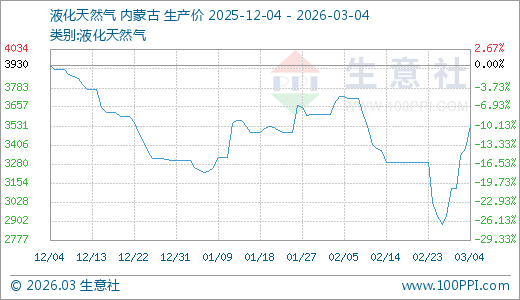 据生意社监测,液化天然气03月04日最新价格3538.00元/吨,最近5天上涨20.26%。