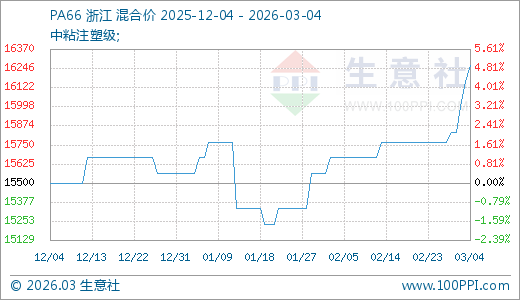 据生意社监测,PA6603月04日最新价格16266.67元/吨,最近5天上涨3.17%。