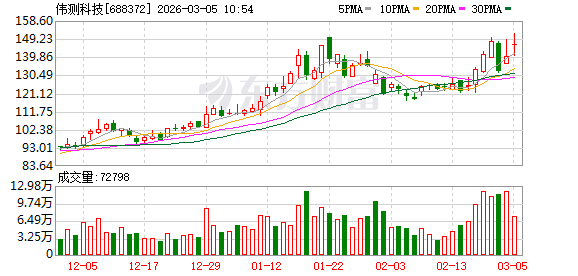 伟测科技股价创出历史新高,截至10:26,该股上涨6.99%,股价报150.32元,成交量578.46万股,成交金额8.38亿元,换手率3.88%,该股最新A股总市值达224.06亿元,该股A股流通市值224.06亿元。