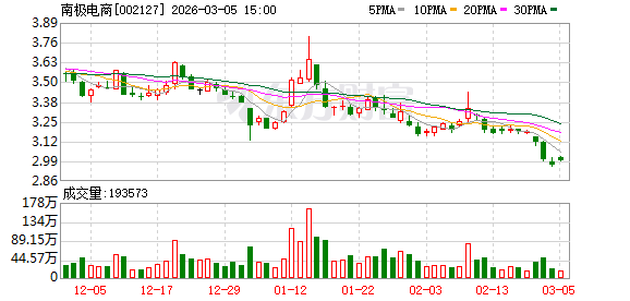 证券时报·数据宝统计显示,南极电商今日收盘价为2.99元,上涨1.01%,日换手率为0.97%,成交额为5799.10万元,全天主力资金净流入319.18万元,近5日该股累计下跌5.97%,近5日资金合计净流出3558.66万元。