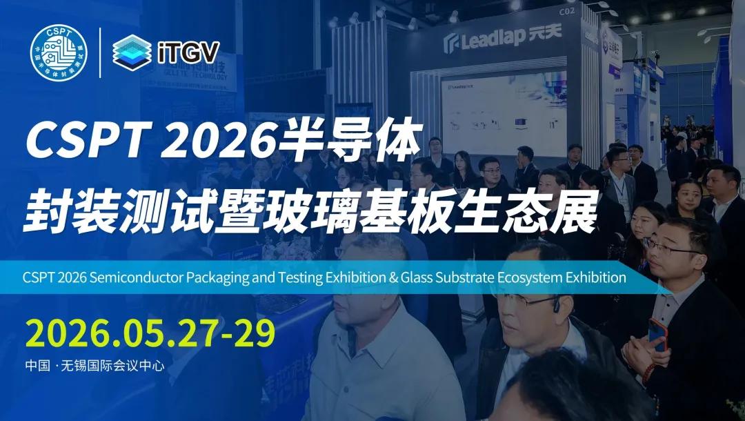 2026年5月27-29日,2026半导体封装测试暨玻璃基生态展(CSPT 2026)将盛大启幕!本次展会设置多个核心展区,同期举办10余场专业论坛。汇聚行业顶尖资源与前沿技术,展示先进封装最新技术解决方案。如您意向参与演讲或参展,可扫码报名。