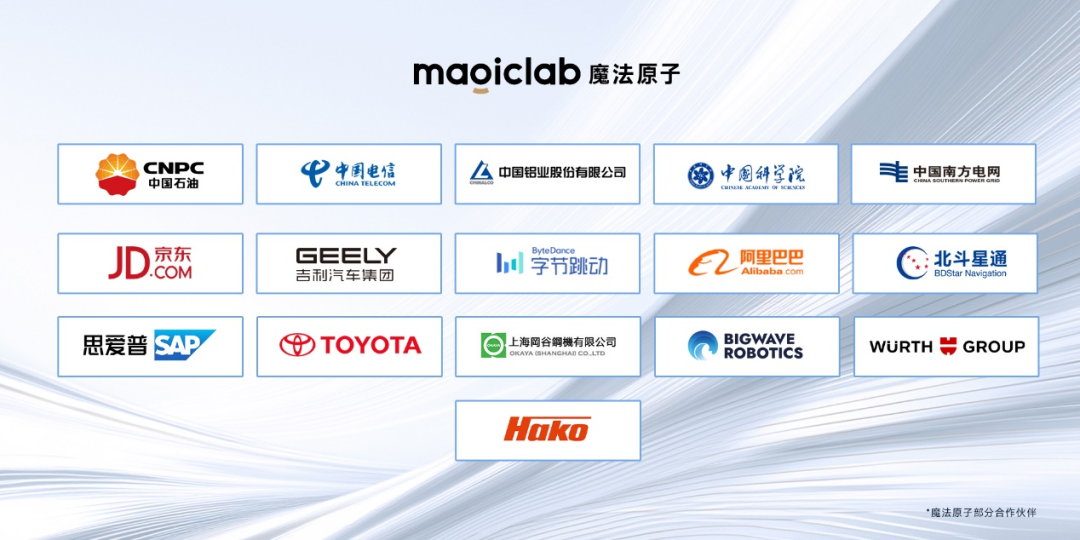 在行业应用层面,魔法原子已与多家头部企业建立合作,覆盖石油石化、通信、制造、电力、IT互联网、零售、教育科研等多个关键领域——国内客户包括中石油、中国电信、中铝集团、中科院、南方电网、京东、吉利、字节跳动、阿里巴巴、北斗星通等。海外市场,携手SAP、丰田、冈谷钢机、Wurth集团等国际企业,推动具身智能解决方案在全球范围内的场景落地,累积订单金额超亿元。