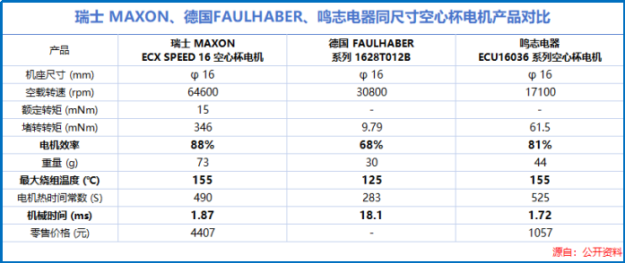 反倒是鸣志电器,早已不声不响间推出了空心杯产品,且能与海外巨头一较高下。