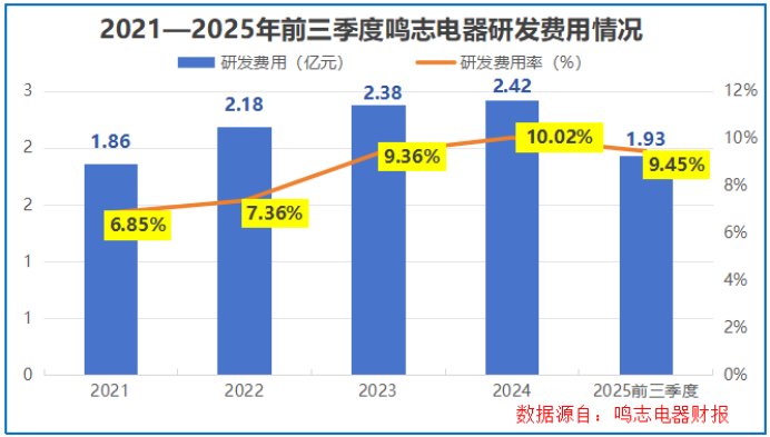2023-2025年前三季度,公司研发费用率稳定在9.5%上下,这种充足且持续的投入,为新兴高附加值赛道持续输送弹药。