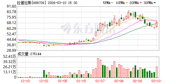 证券时报·数据宝统计显示,拉普拉斯今日收盘价为68.80元,上涨11.15%,日换手率为12.51%,成交额为18.12亿元,全天主力资金净流入2.74亿元,近5日该股累计上涨2.32%,近5日资金合计净流入7770.74万元。
