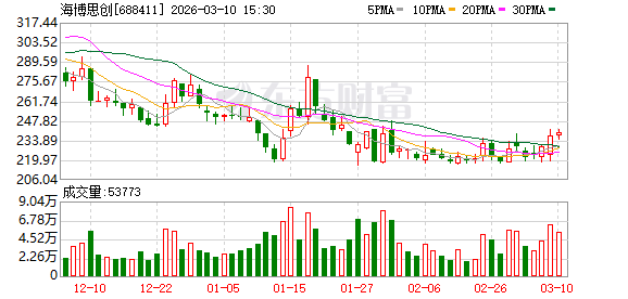 海博思创3月10日大宗交易平台出现一笔成交,成交量12.50万股,成交金额2947.63万元,大宗交易成交价为235.81元,相对今日收盘价折价1.50%。该笔交易的买方营业部为机构专用,卖方营业部为国泰海通证券股份有限公司北京国贸证券营业部。