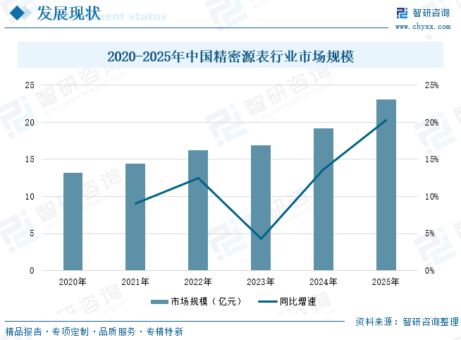 聚焦中国市场,得益于半导体、光通信等领域的需求扩张,中国精密源表市场正处于高速发展阶段,增速引领全球,2025年中国精密源表行业市场规模约为23.1亿元,同比增长20.3%。在中美贸易摩擦升级背景下,半导体与测试仪器领域的供应链风险上升,国内企业与科研院所加速推进精密源表等核心测试设备的国产化,进一步带动本土精密源表市场增长。