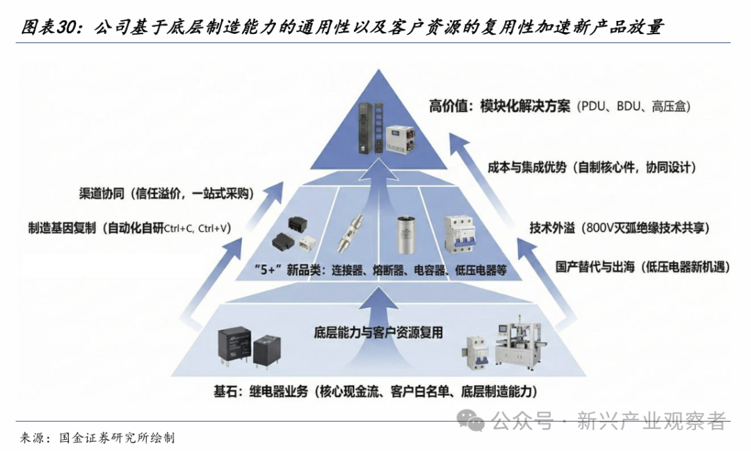 公司基于核心工艺(精密冲压、注塑、自动化)和核心客户(新能源、电动车)扩张产品,本质是底层制造能力的通用性以及客户资源的复用性。中长期视角,我们看好公司从现有客户群拓展,通过产品打包销售&模块化优势加速导入,实现从“全球继电器龙头”向“全球领先的电子元器件及模块解决方案商”跨越。