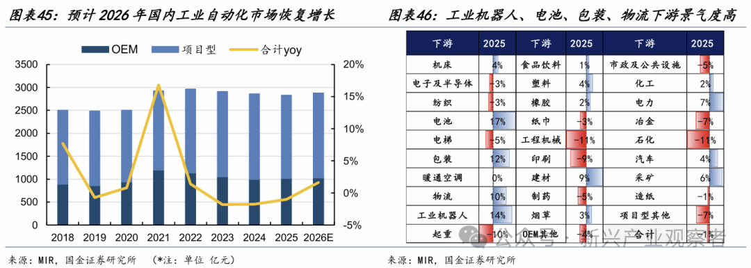 工控继电器主要应用于工业自动化领域,包括机床、PLC、分布式控制系统以及电梯等机电一体化产品,需求主要受国内的工业自动化、智能化升级改造驱动。2025年国内自动化市场规模同比跌幅缩窄(OEM市场需求回暖,项目型市场需求下滑),展望2026年,政策、AI、产业链升级等因素驱动,国内市场有望重回增长轨道。