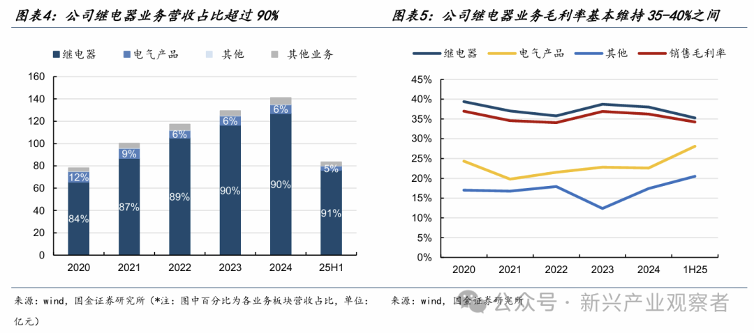 继电器营收占比高、盈利稳定,电气产品等新门类仍处于早期开拓阶段。
