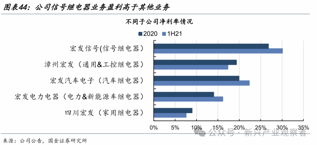 从盈利能力来看,信号继电器高于其他继电器下游,核心在于高技术壁垒(极小的体积内实现微弱信号的精准切换)+高安全权重(应用于安防、消防、网络通讯领域)+低成本敏感度三重叠加。我们认为,伴随5G/物联网的广泛应用与6G临近,安防/消防/温控等细分领域的需求提升,信号继电器有望维持稳健增长,同时公司在智能家居、医疗设备、新能源配套、检测等领域持续深挖新应用能够进一步开辟成长空间。