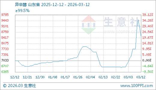 异辛醇03月12日最新价格8466.67元/吨,最近5天上涨9.25%,10天上涨23.90%,20天上涨27.00%。