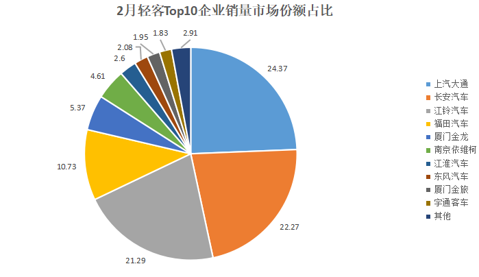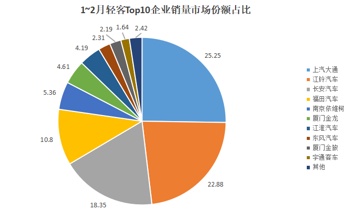 再看市场份额维度,1~2月,轻客市场Top10企业累计市占率达到97.58%,较上月收窄0.39个百分点,变化不大,行业格局保持稳定。