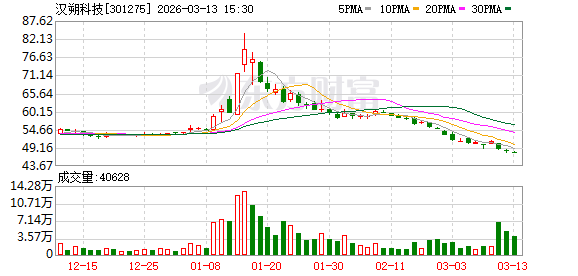 汉朔科技3月13日大宗交易平台共发生2笔成交,合计成交量142.00万股,成交金额6685.50万元。以折溢价进行统计,今日2笔大宗交易成交价相对收盘价均为折价交易。从参与大宗交易营业部来看,机构专用席位共出现在1笔成交的买方或卖方营业部中,合计成交金额为4722.00万元,净买入4722.00万元。
