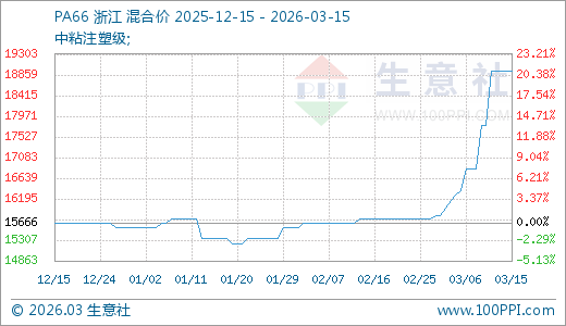 PA66 03月15日最新价格18933.33元/吨,最近5天上涨6.57%,10天上涨15.68%,20天上涨20.08%,60天上涨23.48%。
