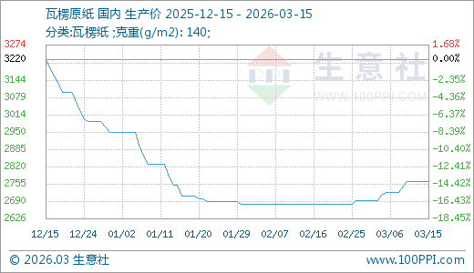 据生意社监测,瓦楞纸03月15日最新价格2764.00元/吨,最近20天上涨3.13%。