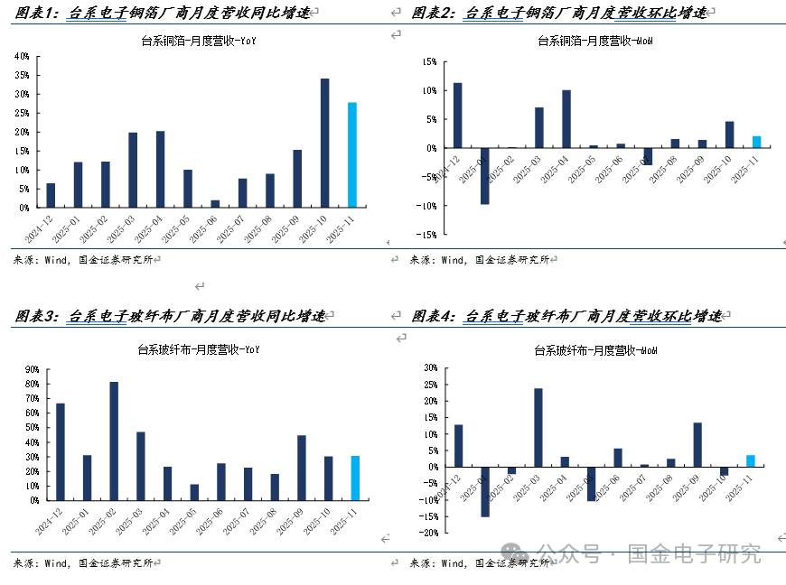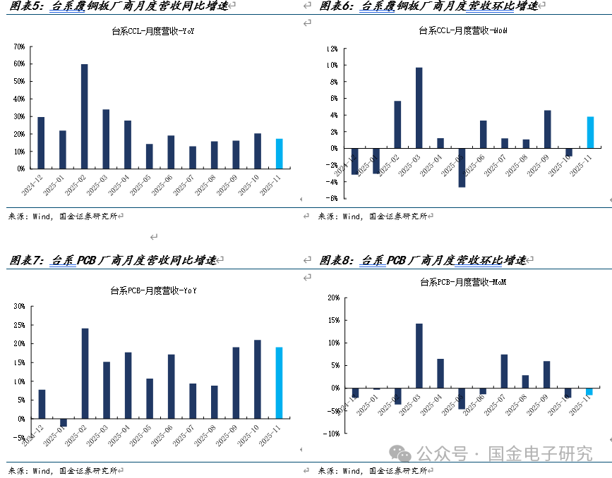 根据1月跟踪,整个产业链景气度判断为“保持高景气度”,主要原因来自于汽车、工控随着政策补贴加持同时AI开始大批量放量,并且从当前的能见度观察来看,一季度有望持续保持较高的景气度状态,中低端原材料和覆铜板涨价在即,我们预计覆铜板涨价已经走到了斜率有望变高的重要时间点,建议保持密切观察。
