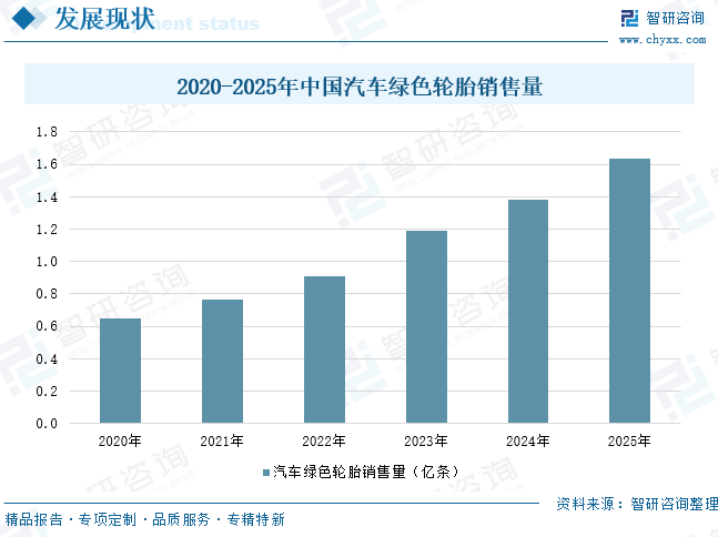 近年来,我国绿色轮胎需求呈现快速增长态势,2023年销售量突破亿条,2024年增长至1.38亿条,2025年突破1.6亿条。市场持续增长是政策、市场、技术、环境、贸易等多个因素协同作用的结果,其中政策大力推动和新能源汽车爆发是两大核心引擎,而技术进步和消费者意识觉醒则为需求增长提供了可持续动力。随着全球绿色转型加速和国际贸易规则趋严,绿色轮胎将从“可选产品”变为"必选产品",市场需求将进一步增长。