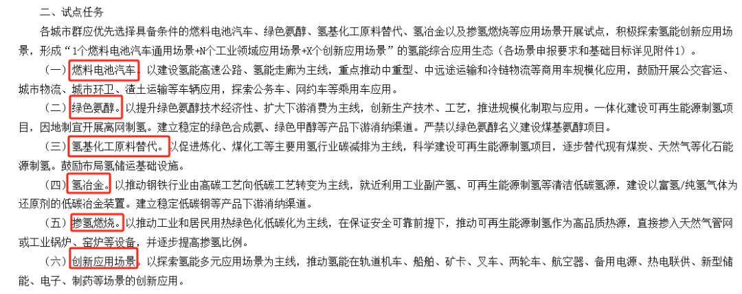 试点工作旨在推动氢能应用从燃料电池汽车拓展至交通、工业多元领域。 试点遴选仅择优确定5个城市群,每个城市群试点期为4年。