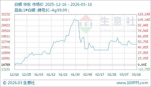 白银03月16日最新价格21978.00元/千克,最近30天上涨10.14%,90天上涨48.81%。