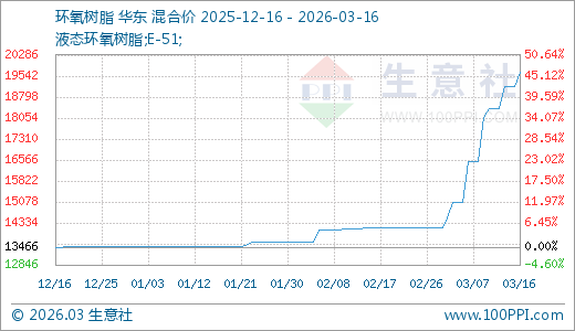 环氧树脂03月16日最新价格19666.67元/吨,最近5天上涨6.88%,10天上涨19.19%,20天上涨38.82%,60天上涨45.68%。