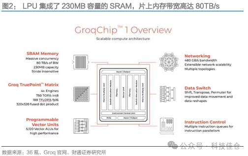 图2:LPU集成了230MB容量的SRAM,片上内存带宽高达80TB/s