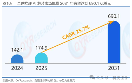 图16:全球推理AI芯片市场规模2031年有望达到690.1亿美元