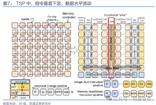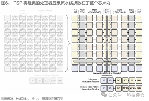 图6:TSP将经典的处理器五级流水线拆散在了整个芯片内