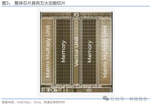 LPU为新一代面向大模型推理阶段的芯片,核心为TSP架构。LPU是专为顺序处理的计算密集型任务设计的新型芯片架构,核心在于TSP架构,包含五大功能模块,将经典的处理器五级流水线拆散在整个芯片内,进而消除了硬件的复杂性,使指令执行顺序和时间具有确定性。在TSP架构下,编译器可以直接访问并精确控制芯片的底层硬件状态,实现了软件定义硬件。