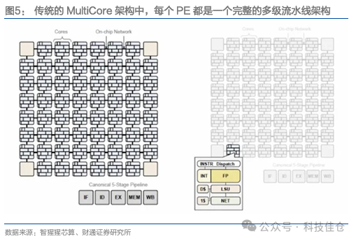 图5:传统的MultiCore架构中,每个PE都是一个完整的多级流水线架构